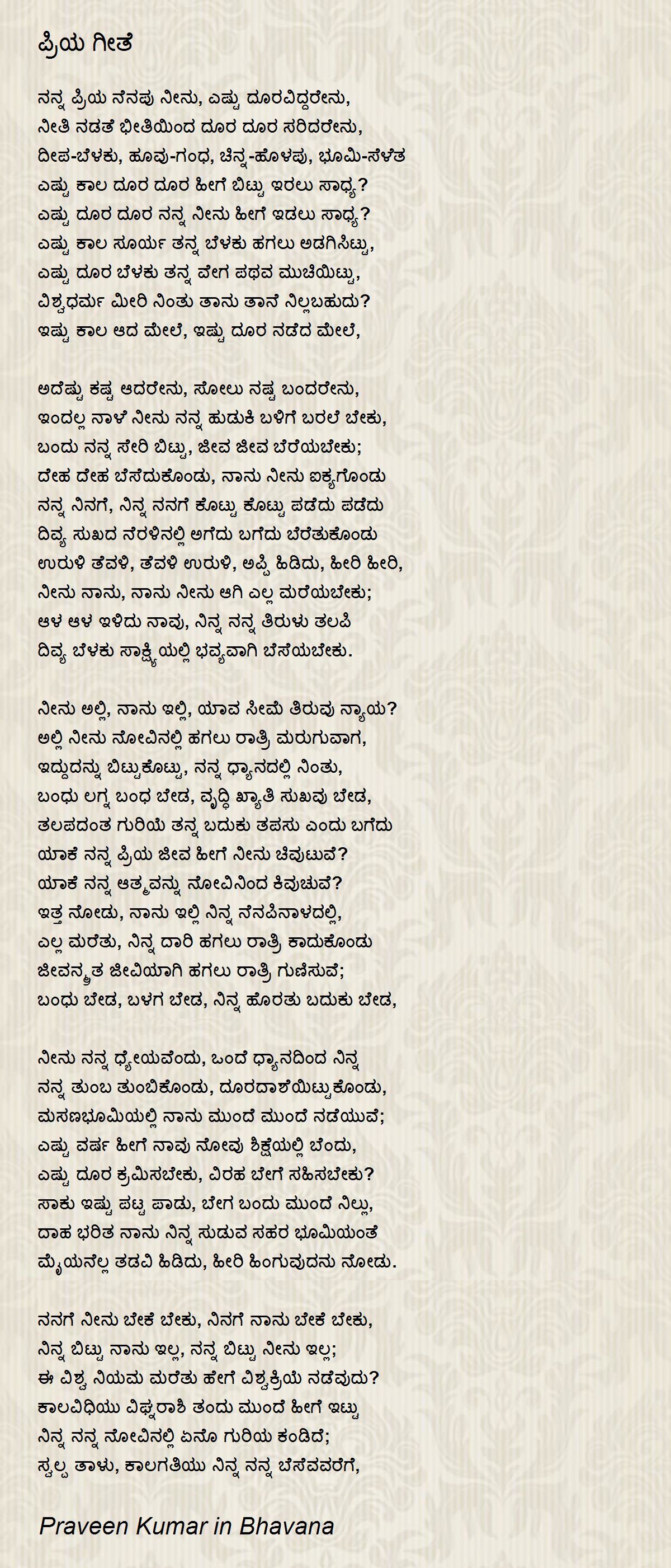 ಬಂಧು ಬೇಡ, ಬಳಗ ಬೇಡ, ನಿನ್ನ ಹೊರತು ಬದುಕು ಬೇಡ,