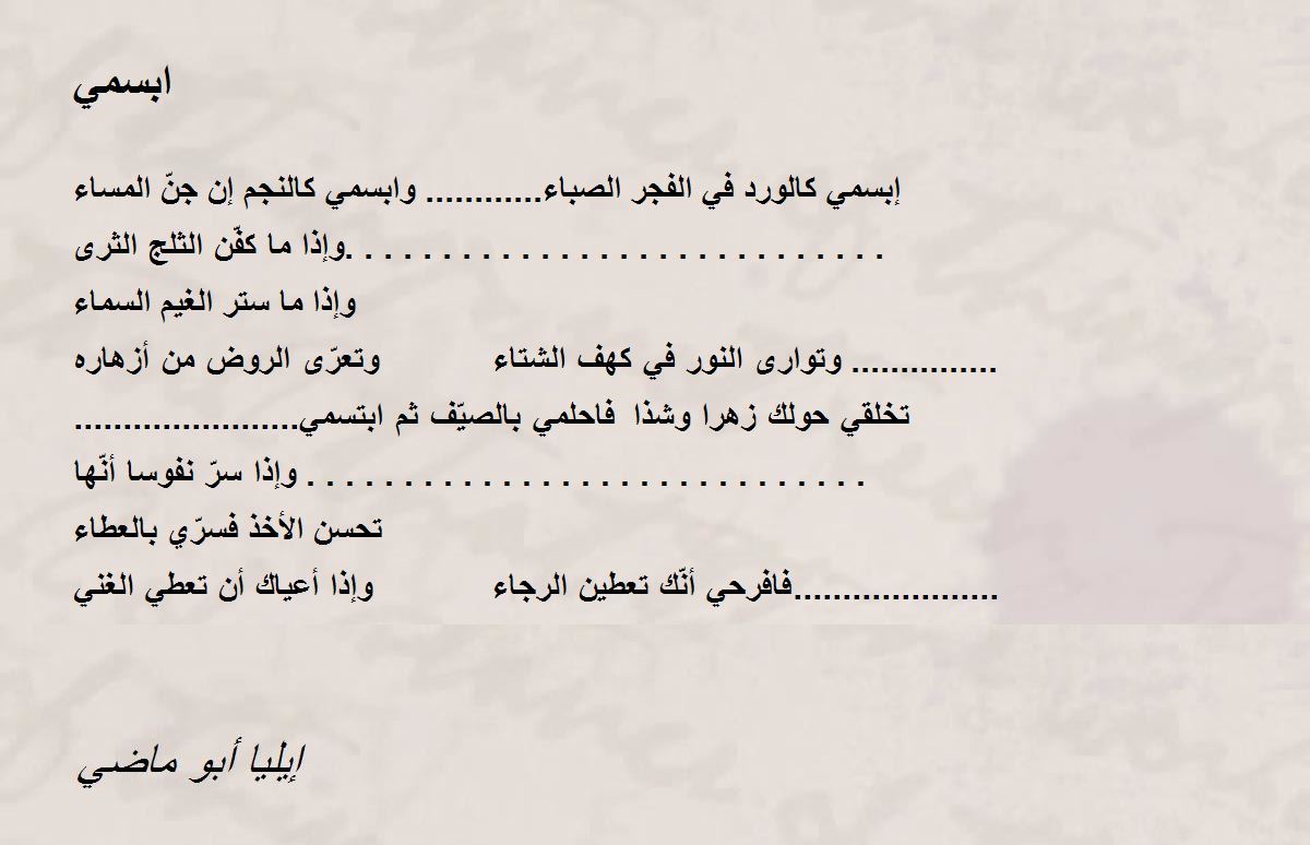 إبسمي كالورد في الفجر الصباء............ وابسمي كالنجم إن جنّ المساء
