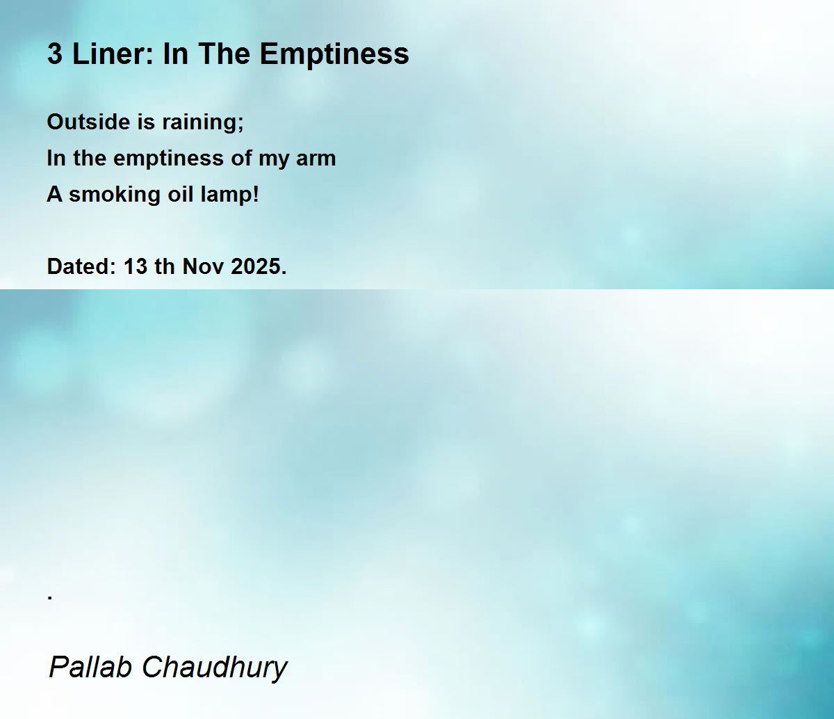 Outside is raining; In the emptiness of my arm A smoking oil lamp! Dated: 13 th Nov 2025. .