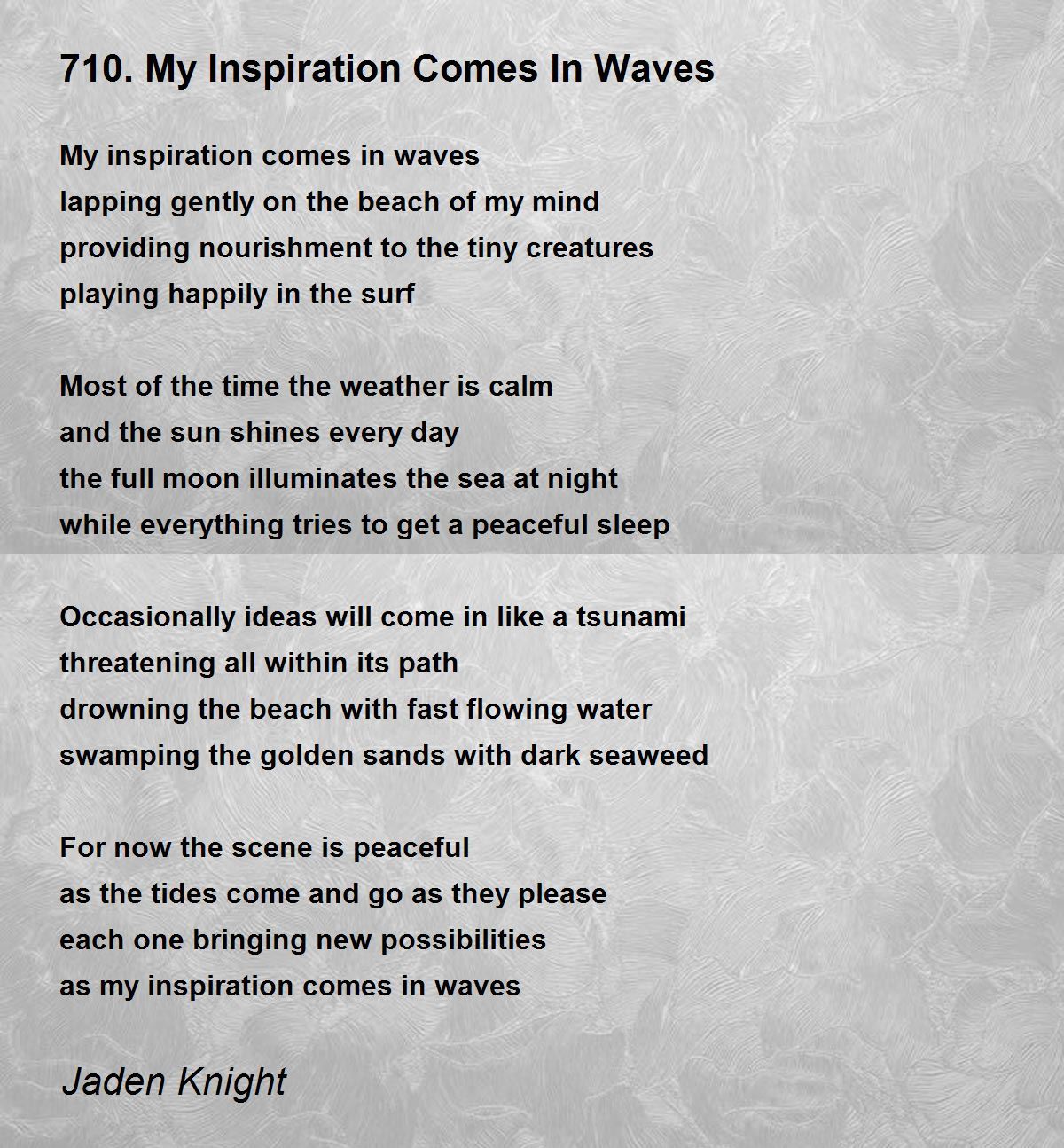 Inspiration comes in greater waves and these waves adore each moment of life. Ideas come with peaceful mood. A nice poem is shared.10