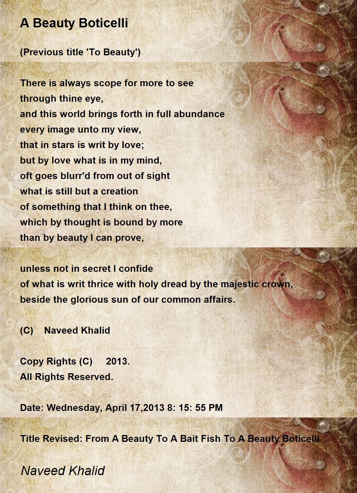 (Previous title 'To Beauty')