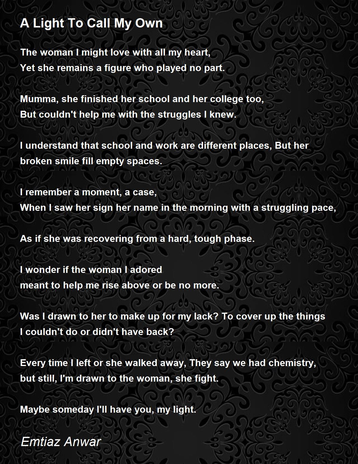 I understand that school and work are different places, But her broken smile fill empty spaces.