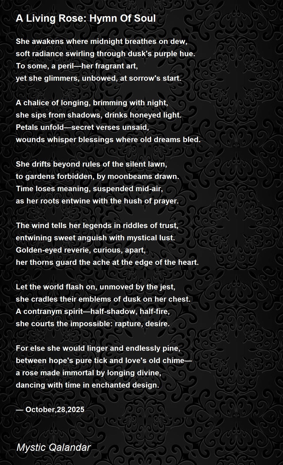 a rose made immortal by longing divine,