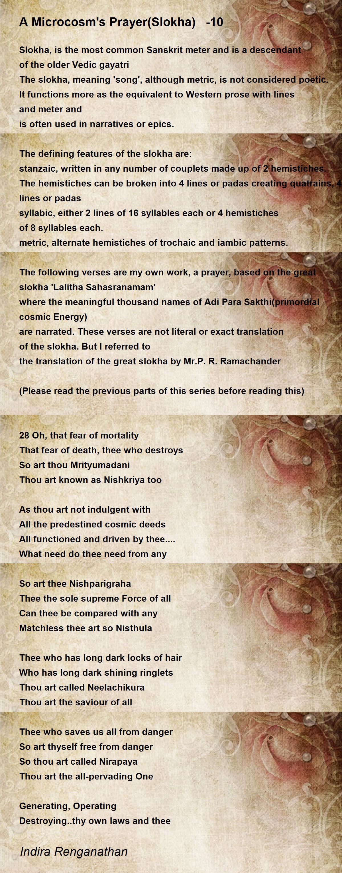 the translation of the great slokha by Mr.P. R. Ramachander