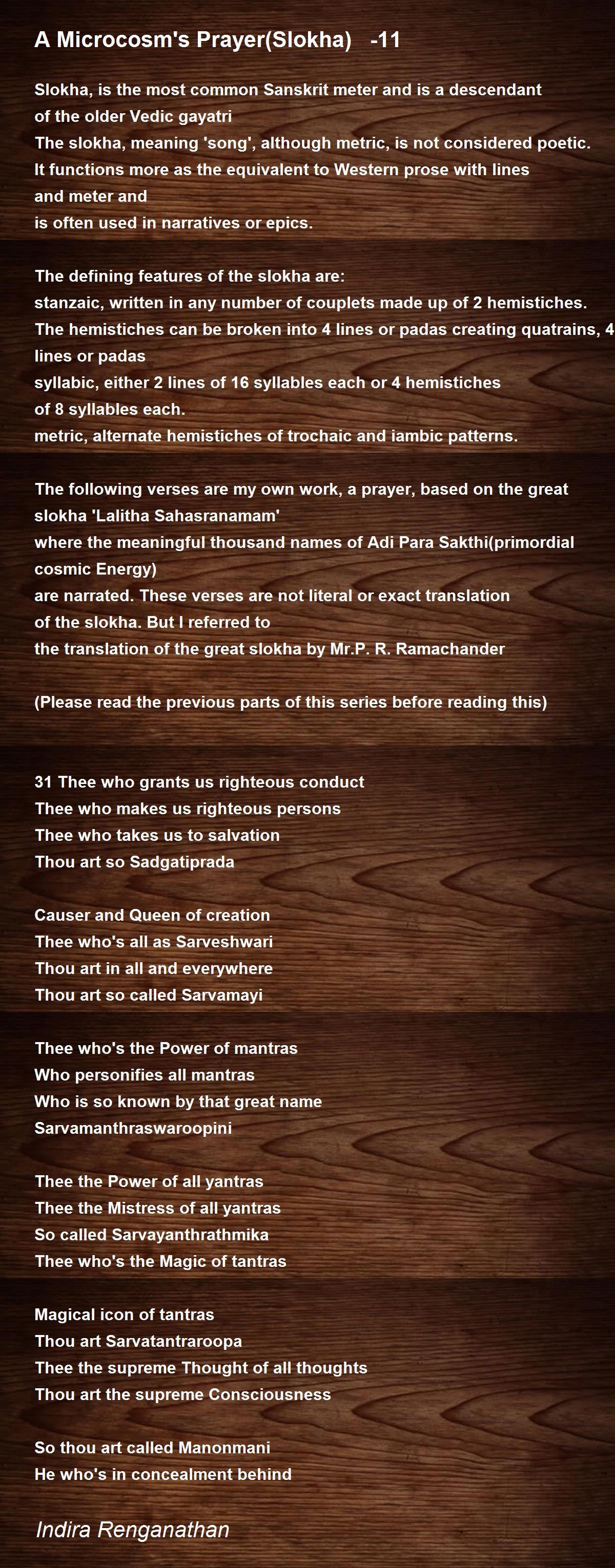 Slokha, is the most common Sanskrit meter and is a descendant of the older Vedic gayatri
