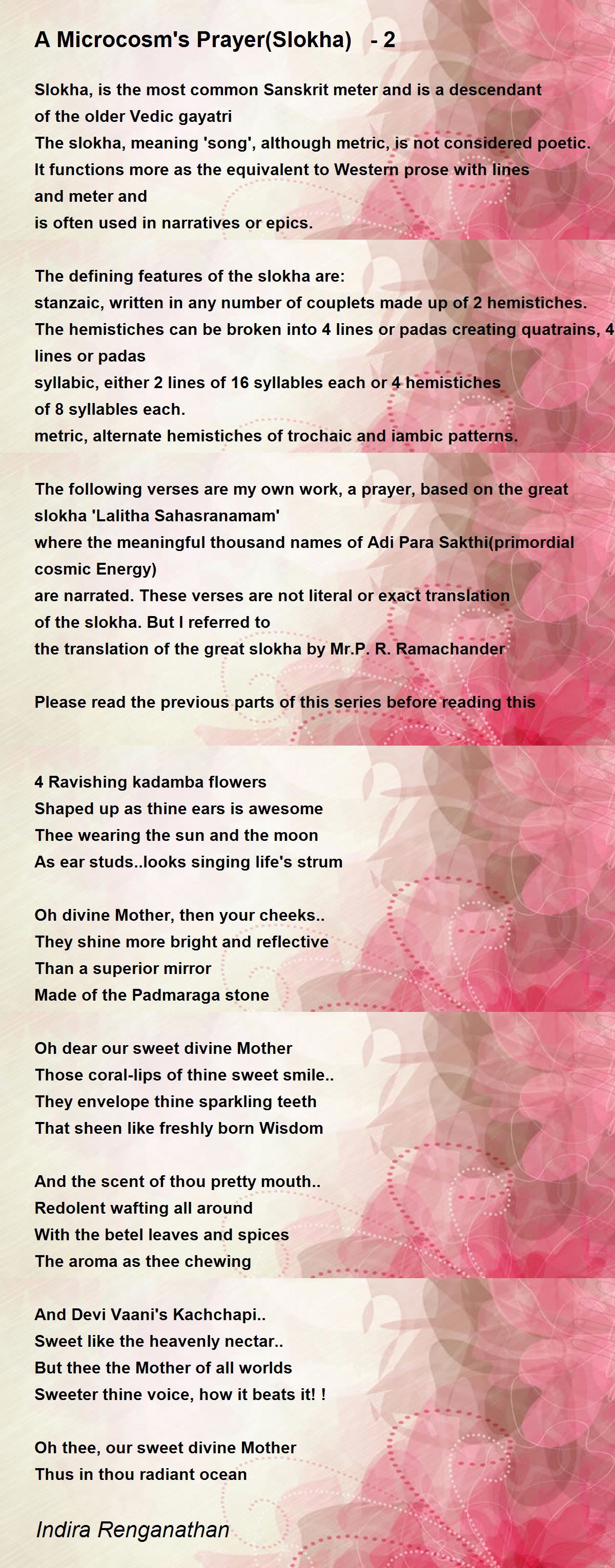 Slokha, is the most common Sanskrit meter and is a descendant of the older Vedic gayatri