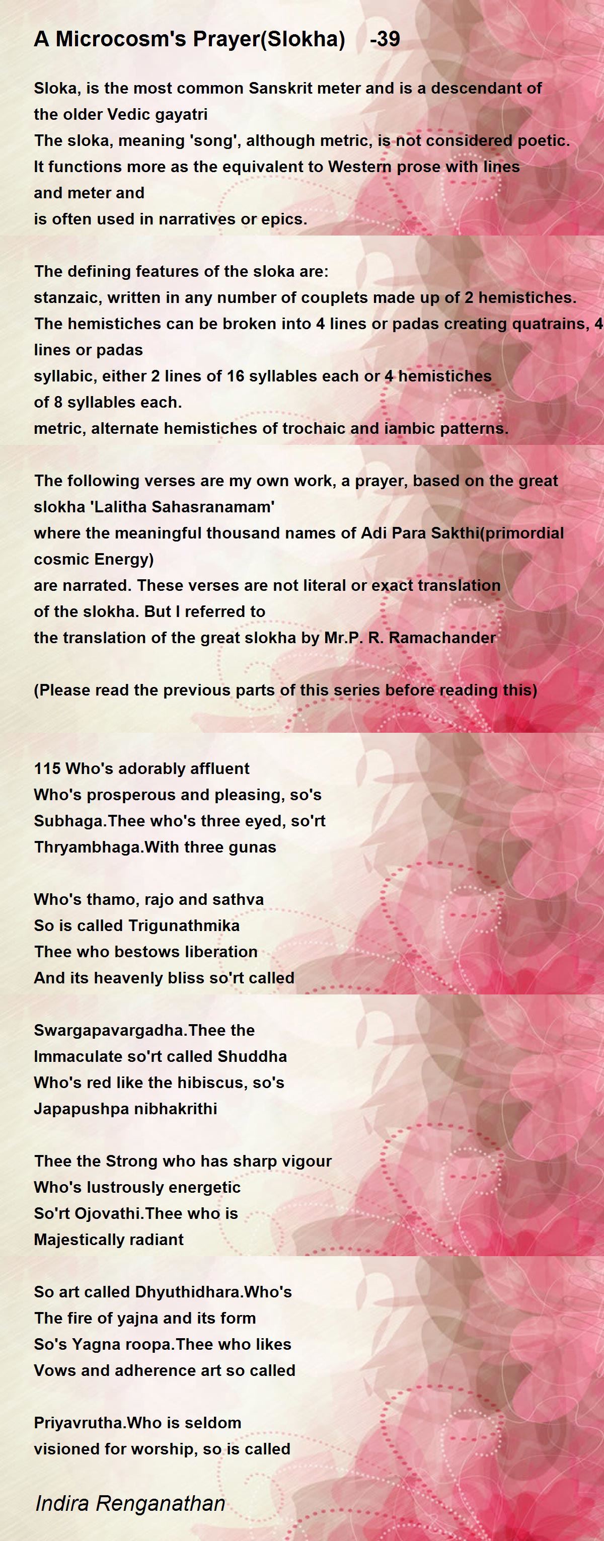 The sloka, meaning 'song', although metric, is not considered poetic.