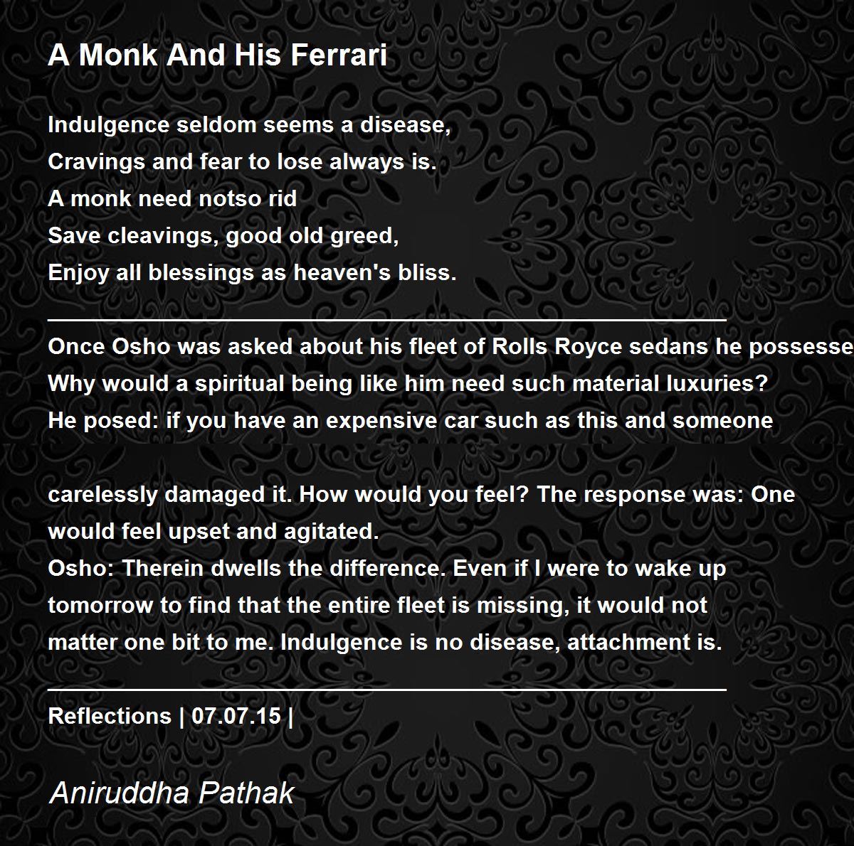 Once Osho was asked about his fleet of Rolls Royce sedans he possessed. Why would a spiritual being like him need such material luxuries? He posed: if you have an expensive car such as this and someone carelessly damaged it. How would you feel? The response was: One would feel upset and agitated.