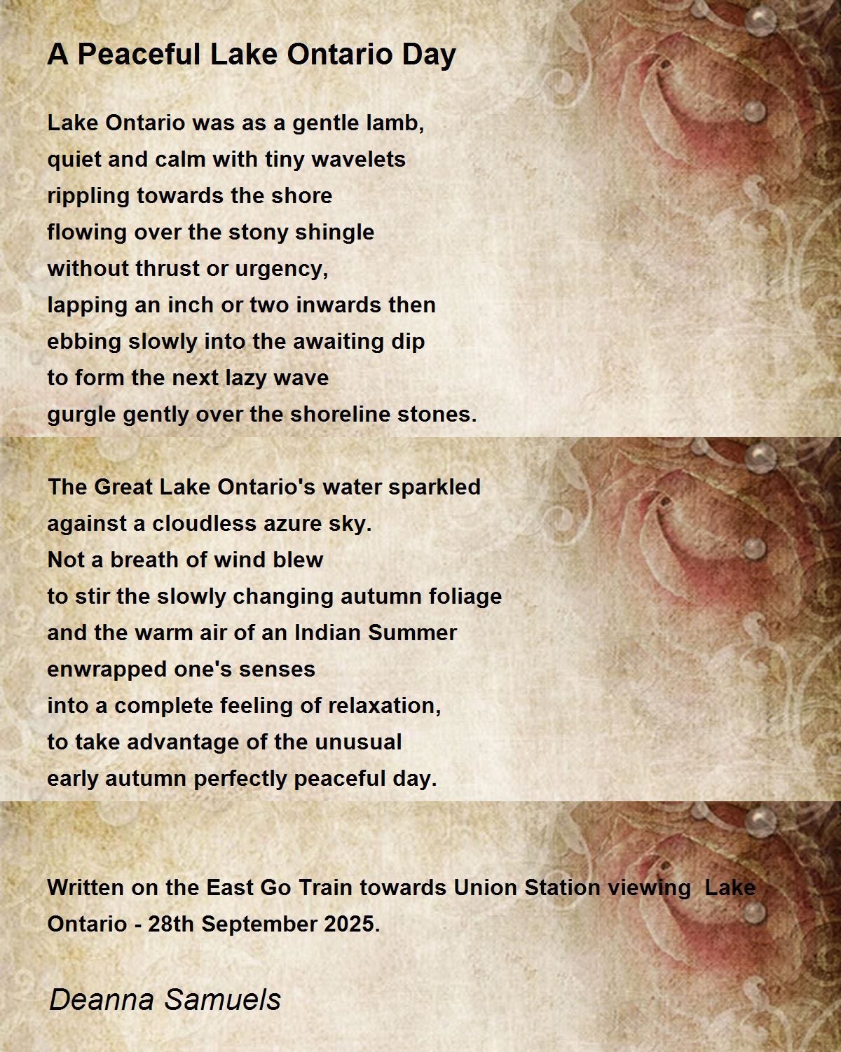 Written on the East Go Train towards Union Station viewing Lake Ontario - 28th September 2025.