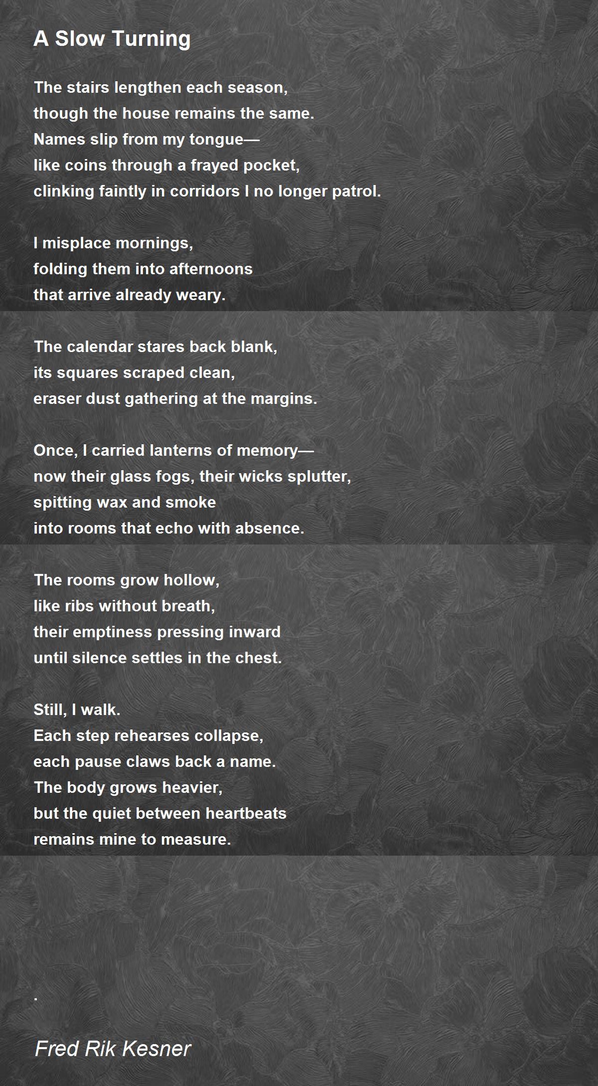 into rooms that echo with absence.