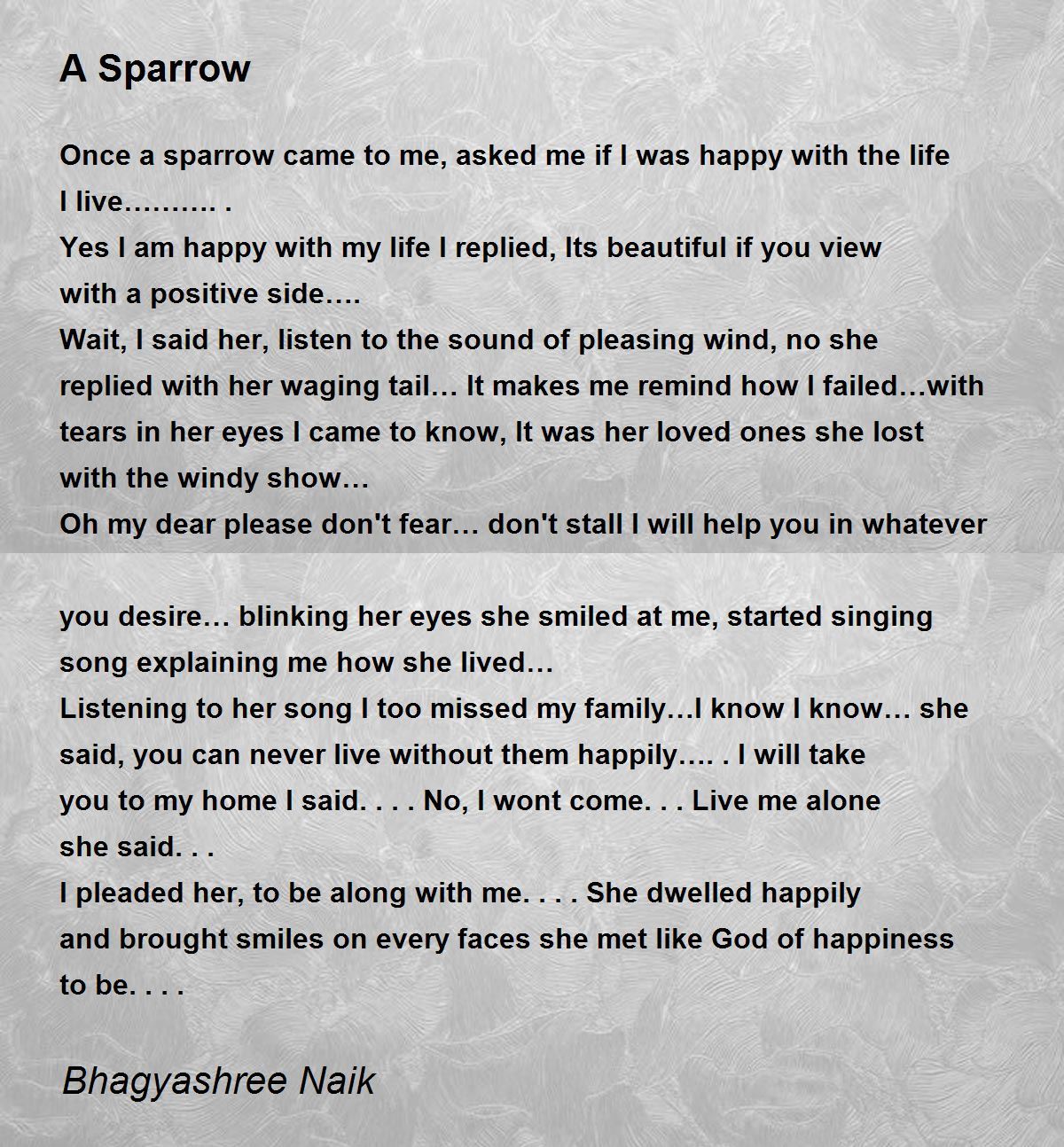 Once a sparrow came to me, asked me if I was happy with the life I live………..