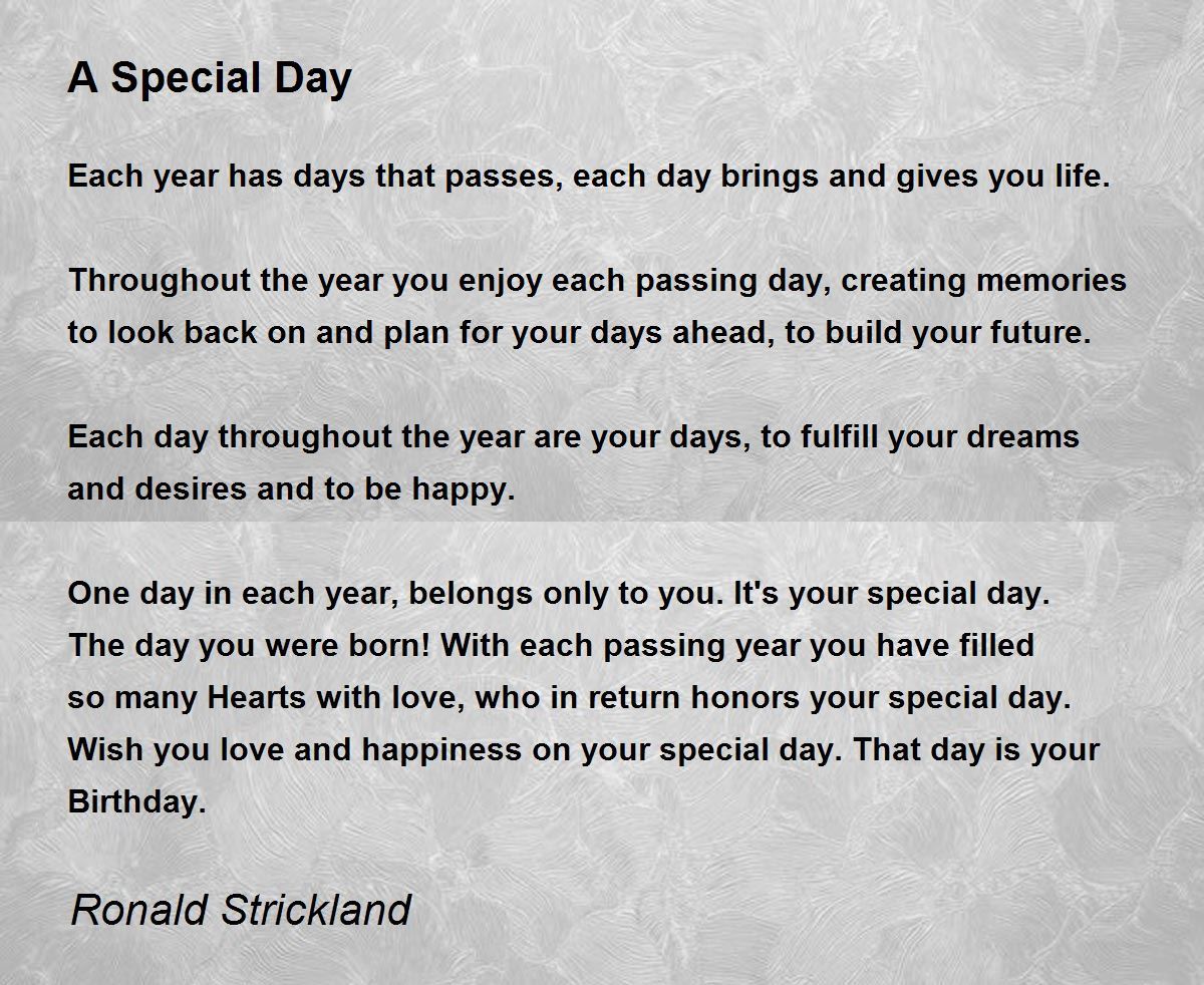 The day you were born! With each passing year you have filled so many Hearts with love, who in return honors your special day.