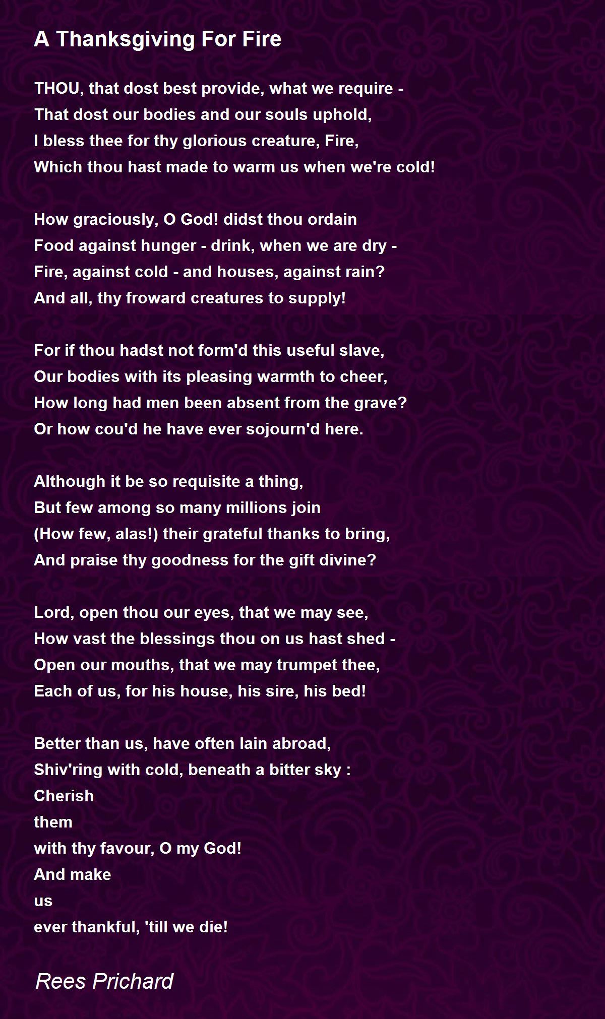 I bless thee for thy glorious creature, Fire,