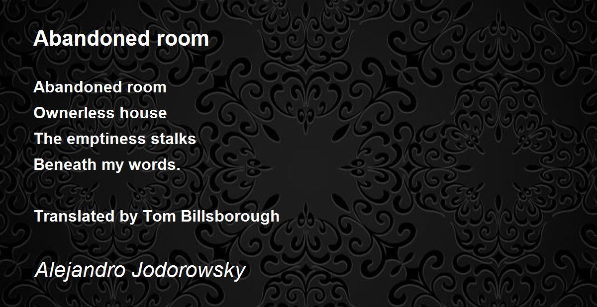 Abandoned room Ownerless house The emptiness stalks Beneath my words. Translated by Tom Billsborough