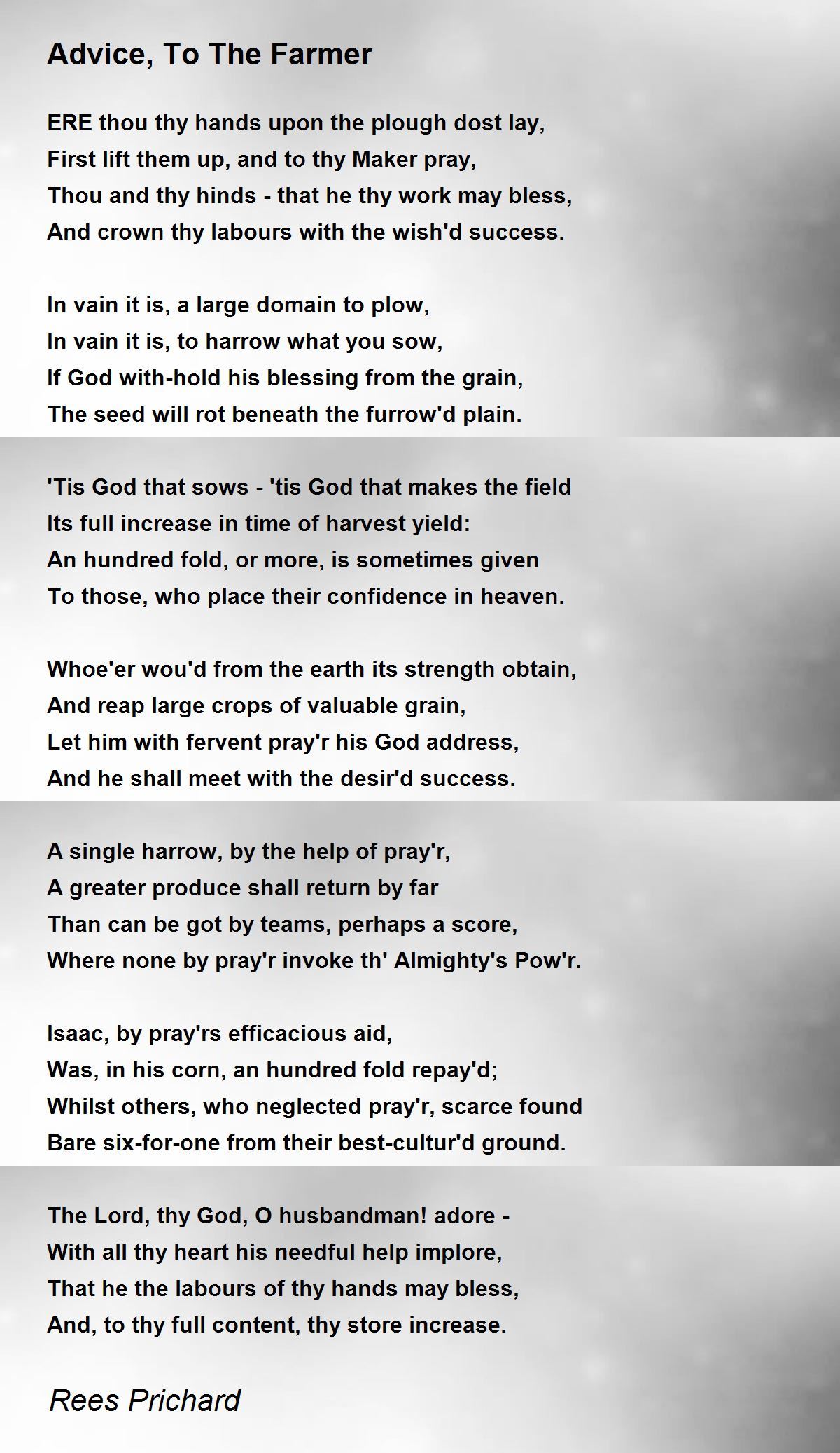 The Lord, thy God, O husbandman! adore -