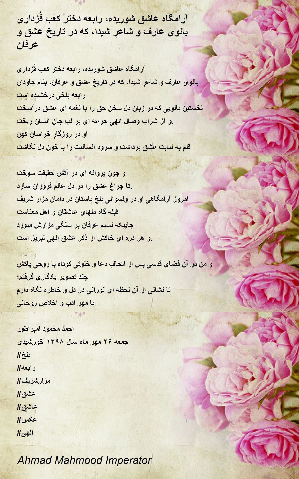 بانوی عارف و شاعرِ شیدا، که در تاریخ عشق و عرفان، بنام جاودان