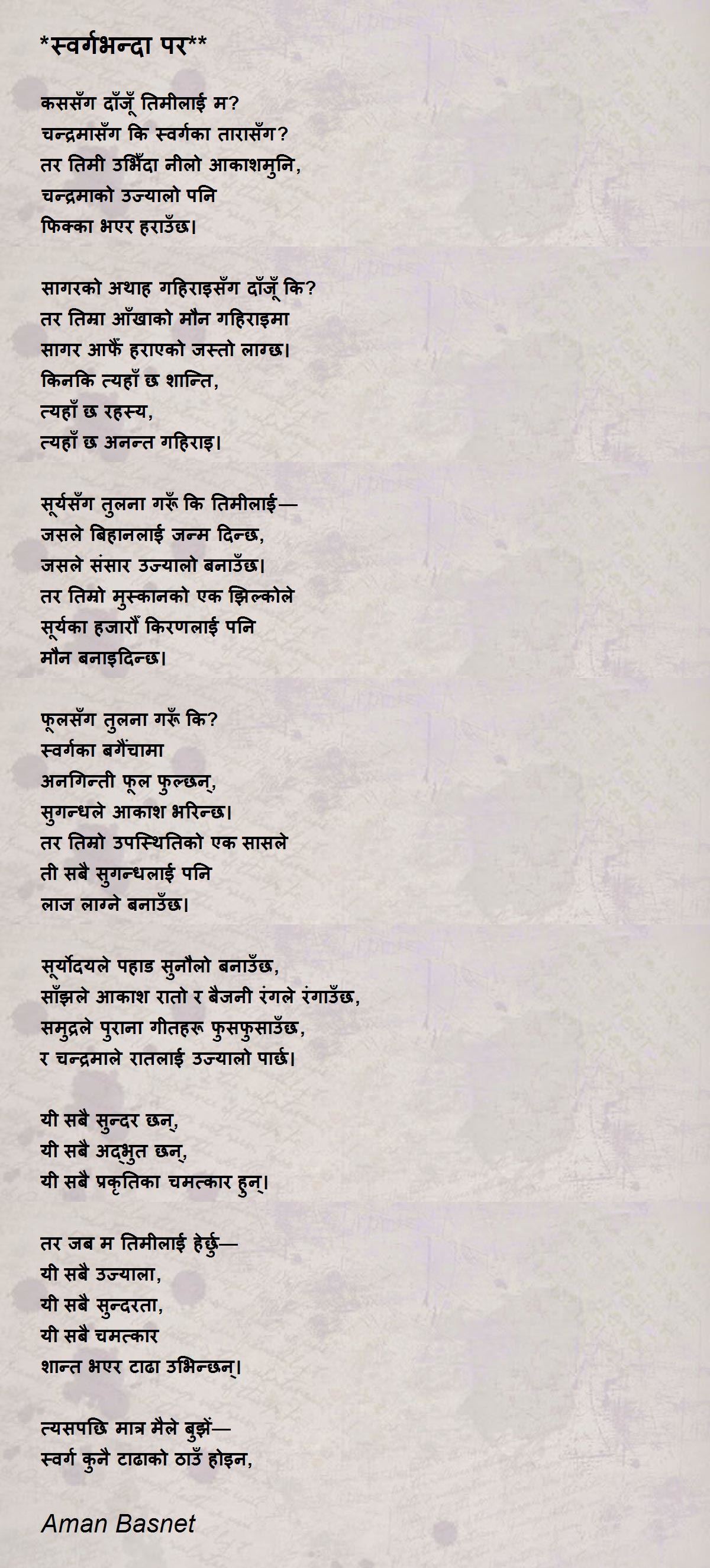 चन्द्रमासँग कि स्वर्गका तारासँग?