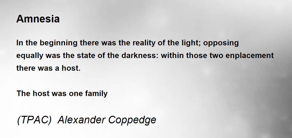 In the beginning there was the reality of the light; opposing equally was the state of the darkness: within those two enplacement there was a host.