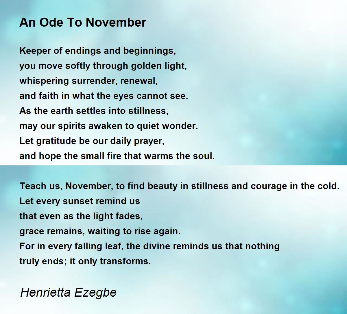 Teach us, November, to find beauty in stillness and courage in the cold.