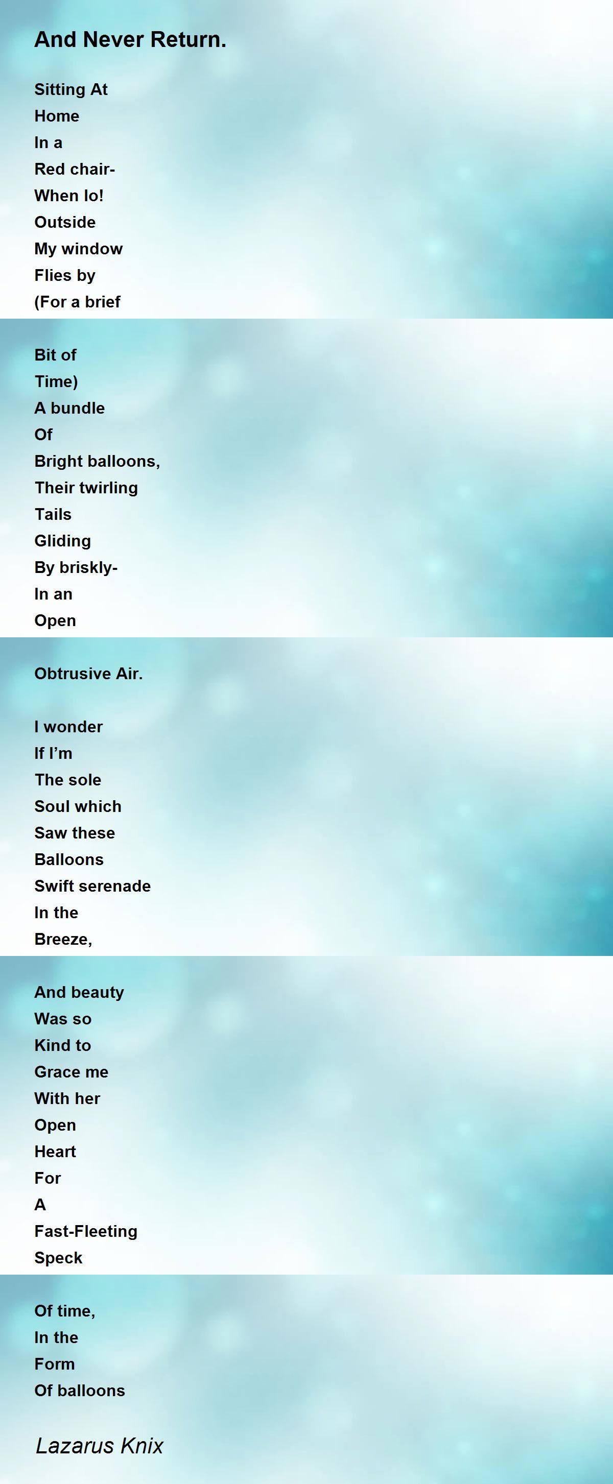 And simplicity is king! I too have sailed away on fugitive helium balloons. They can get so high in the hot air. Wonderful writing, like the short lines; they add even more excitement.