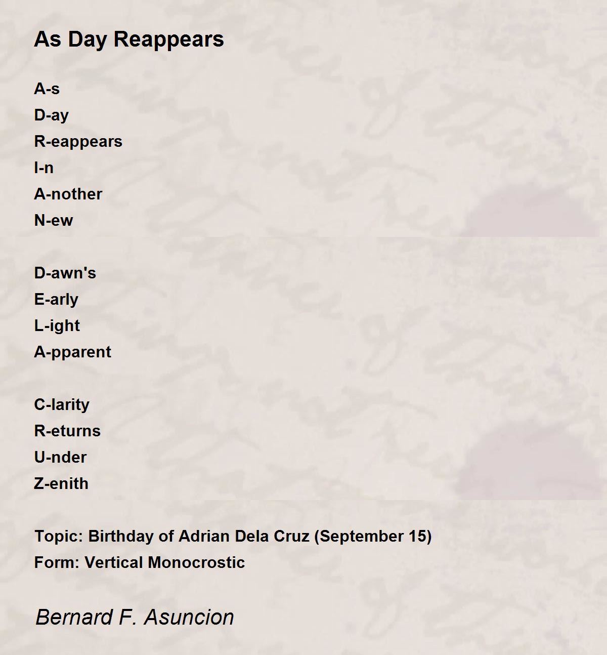 Topic: Birthday of Adrian Dela Cruz (September 15)