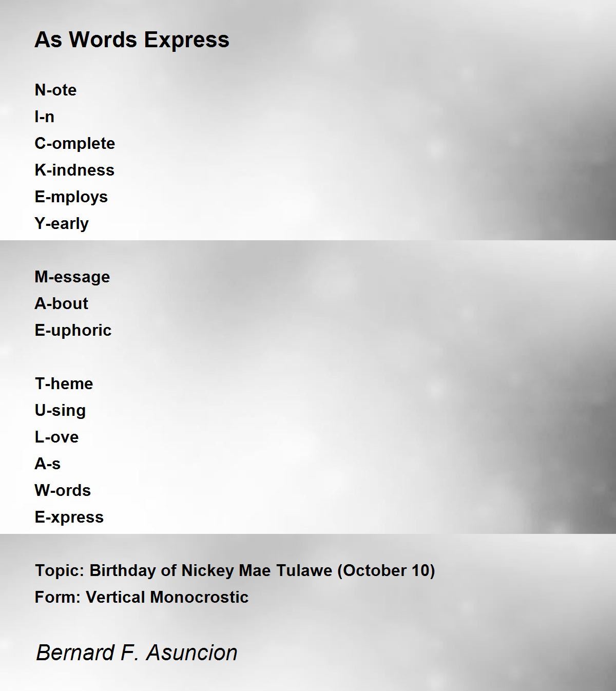 Topic: Birthday of Nickey Mae Tulawe (October 10)