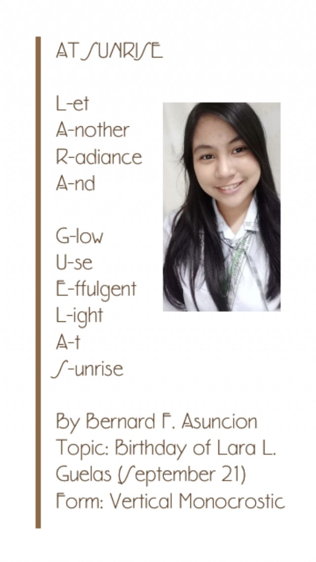 Topic: Birthday of Lara L. Guelas (September 21)