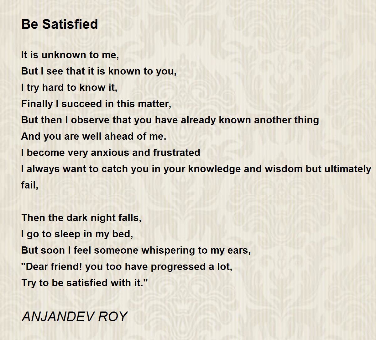 Try to be satisfied with it."