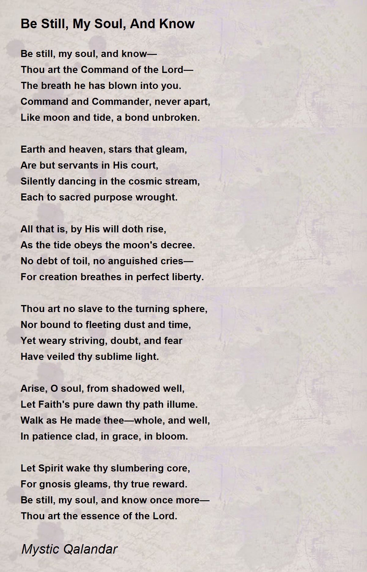 Be still, my soul, and know once more—