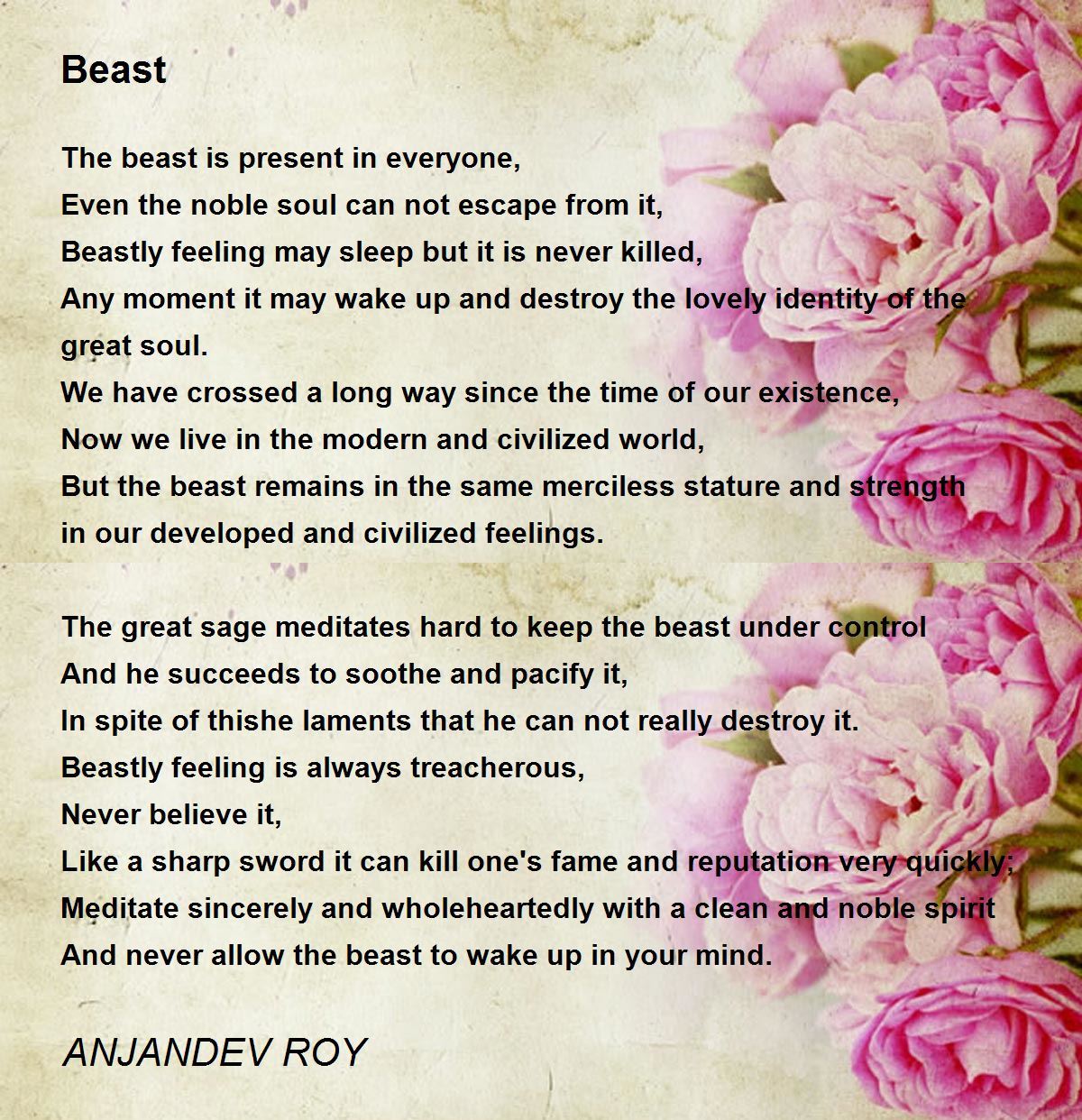 But the beast remains in the same merciless stature and strength in our developed and civilized feelings.