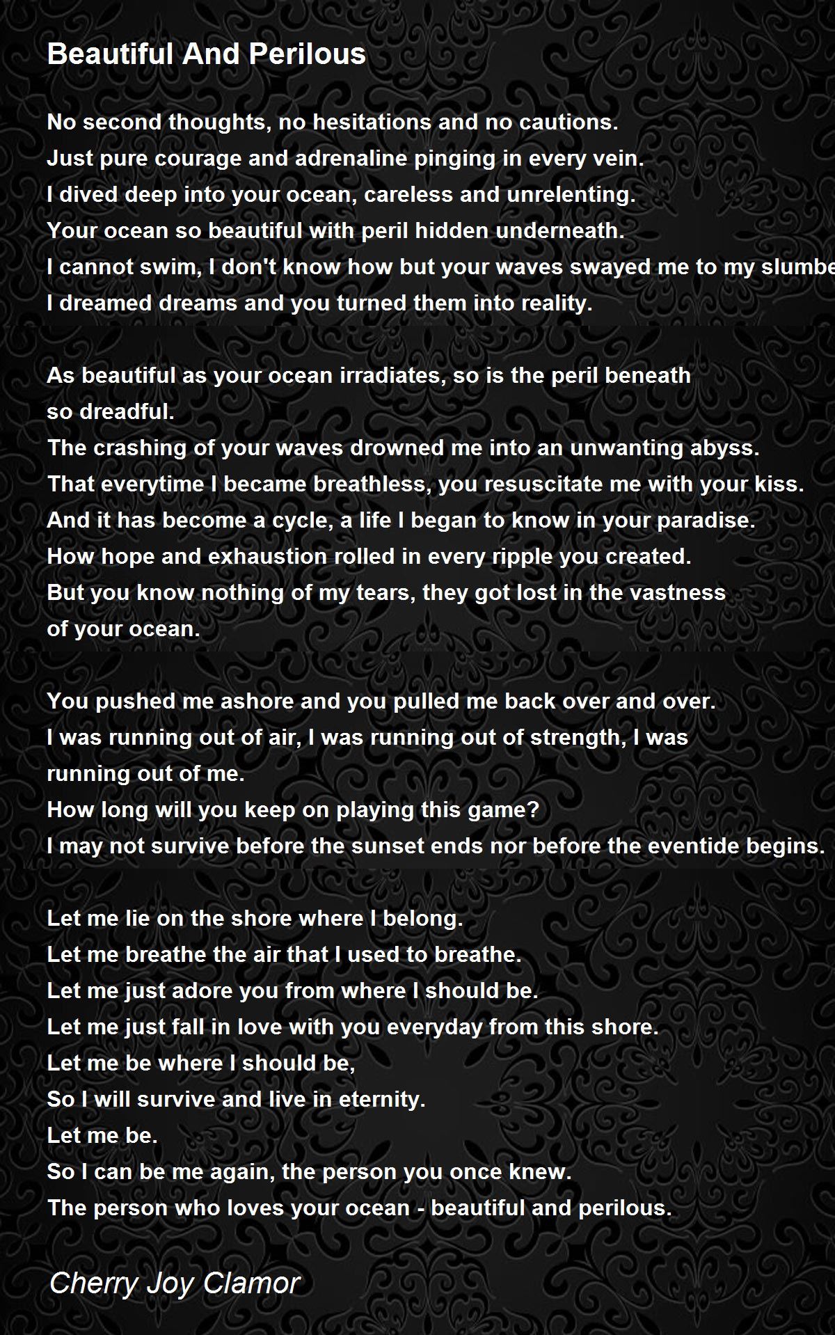 As beautiful as your ocean irradiates, so is the peril beneath so dreadful.