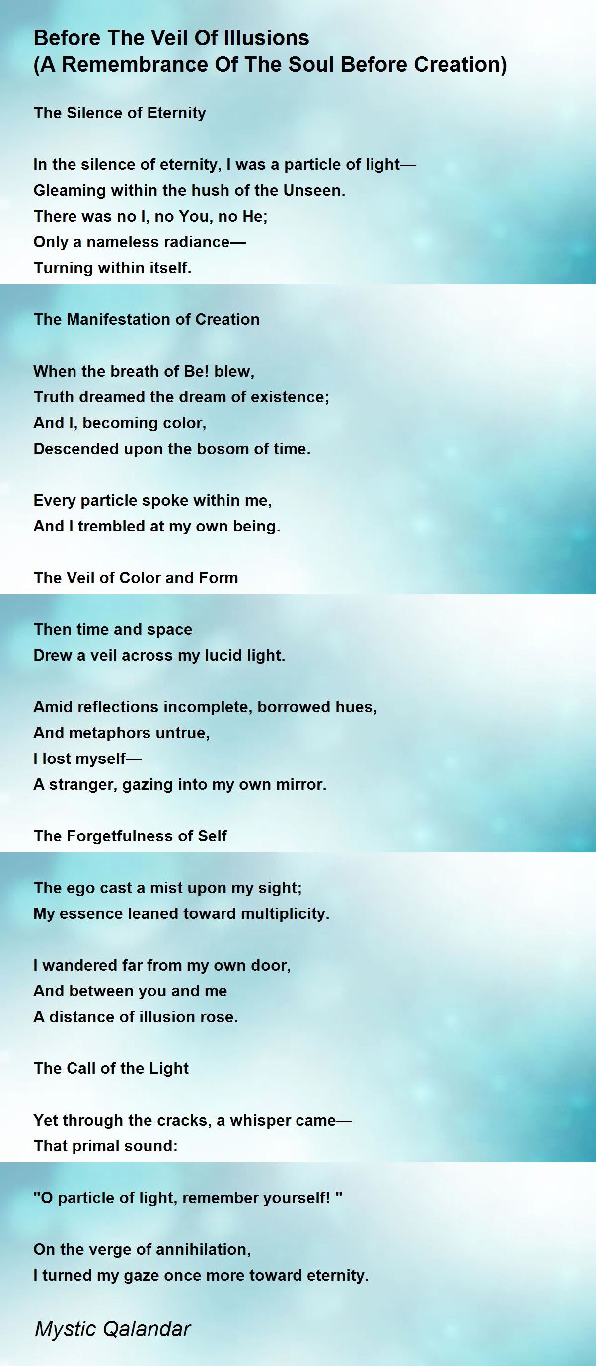 In the silence of eternity, I was a particle of light—