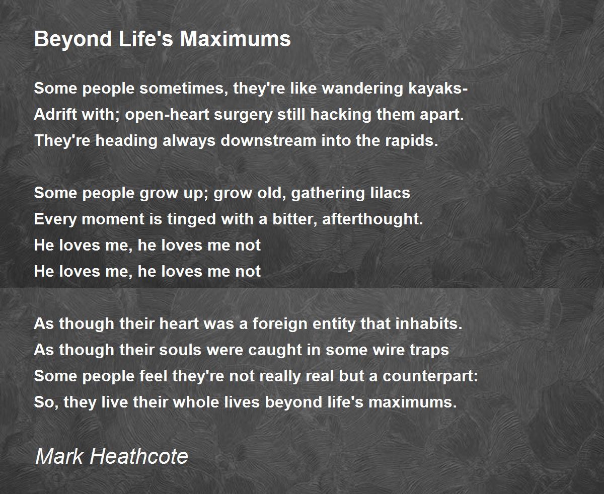 So, they live their whole lives beyond life's maximums.