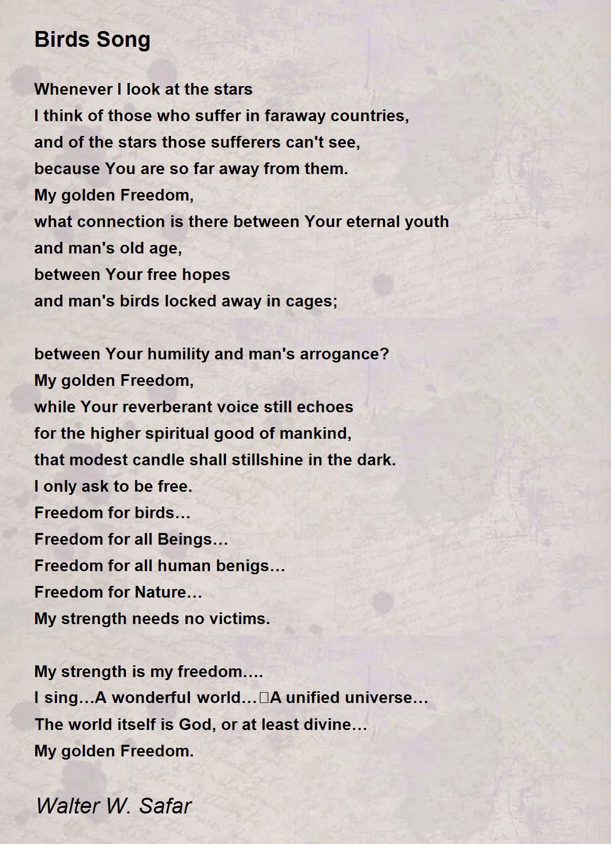 Birds Song Poem by Walter W. Safar