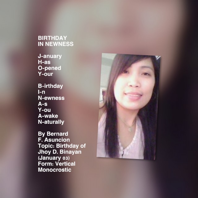 Topic: Birthday of Jhoy D. Binayan (January 03)