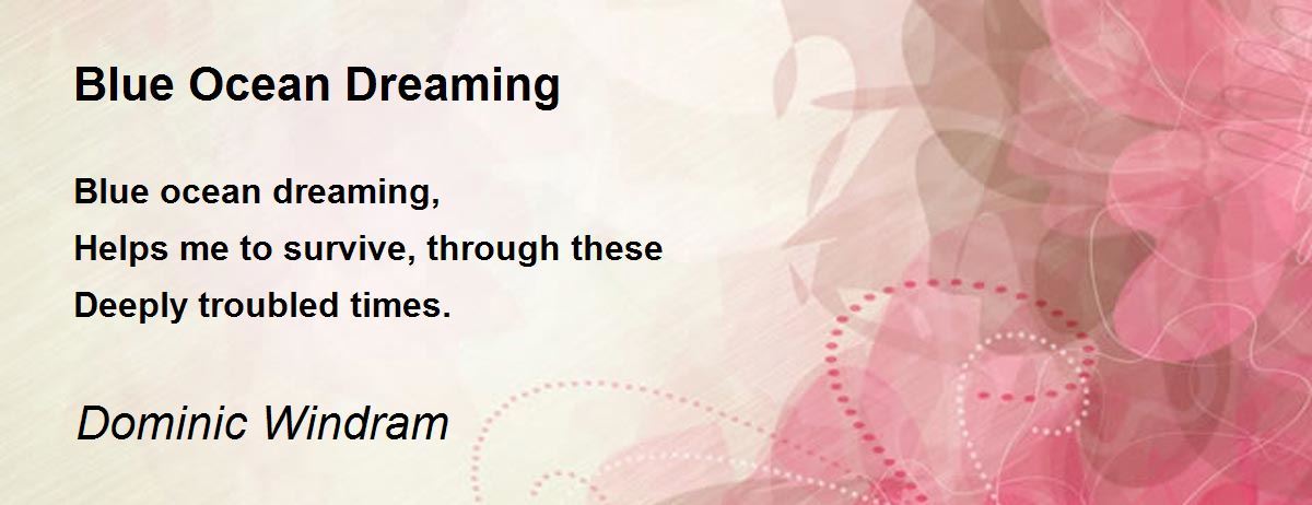 Blue ocean dreaming, Helps me to survive, through theseDeeply troubled times.