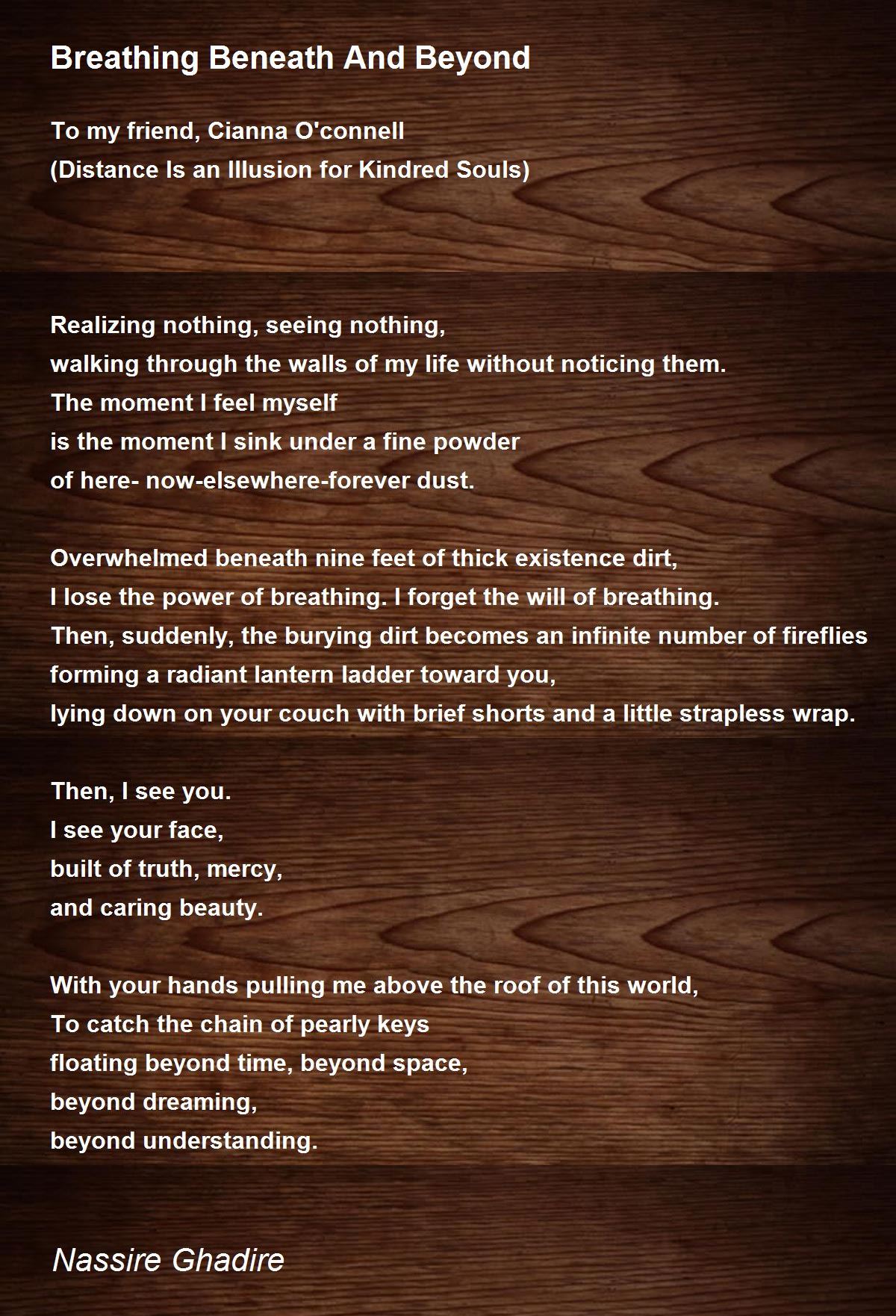 I lose the power of breathing. I forget the will of breathing.