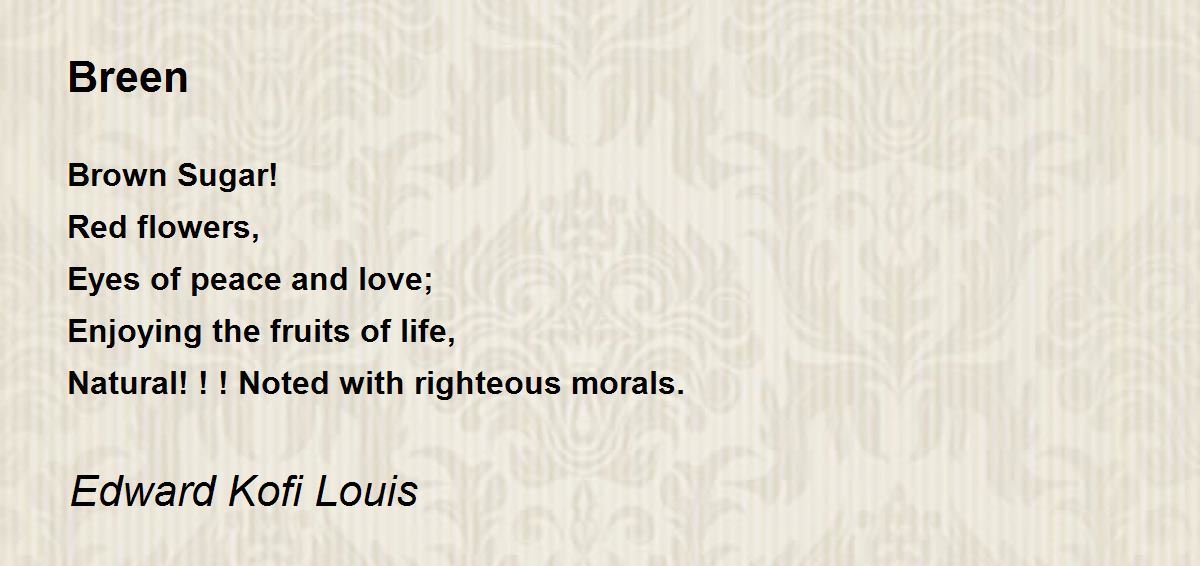 Brown Sugar! Red flowers, Eyes of peace and love; Enjoying the fruits of life, Natural! ! ! Noted with righteous morals.
