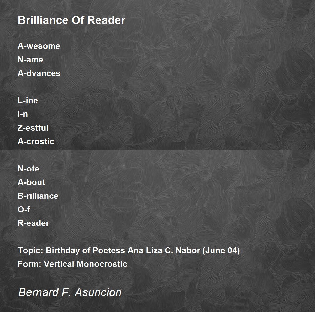 Topic: Birthday of Poetess Ana Liza C. Nabor (June 04)