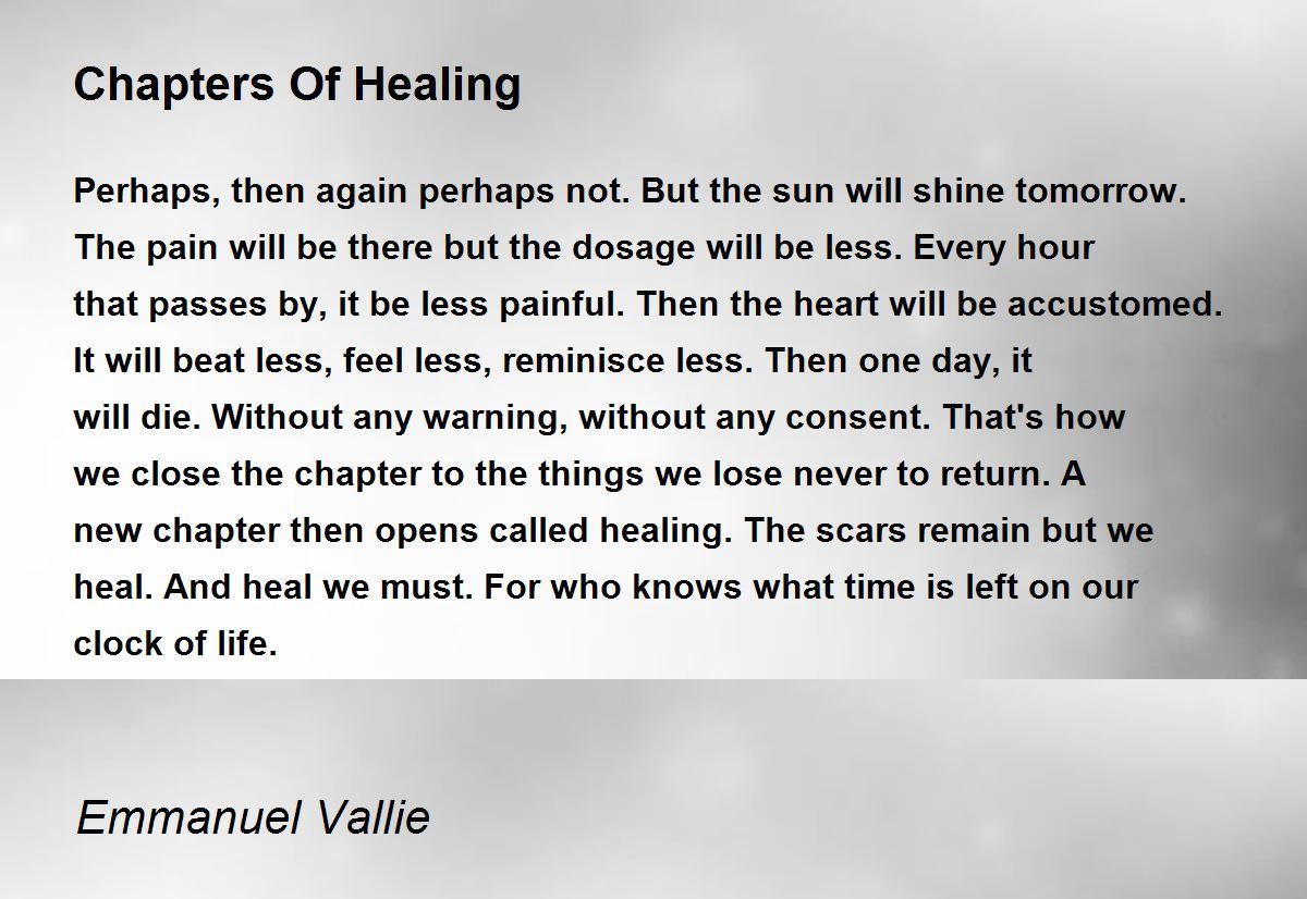 Perhaps, then again perhaps not. But the sun will shine tomorrow. The pain will be there but the dosage will be less. Every hour that passes by, it be less painful. Then the heart will be accustomed. It will beat less, feel less, reminisce less. Then one day, it will die. Without any warning, without any consent. That's how we close the chapter to the things we lose never to return. A new chapter then opens called healing. The scars remain but we heal. And heal we must. For who knows what time is left on our clock of life.
