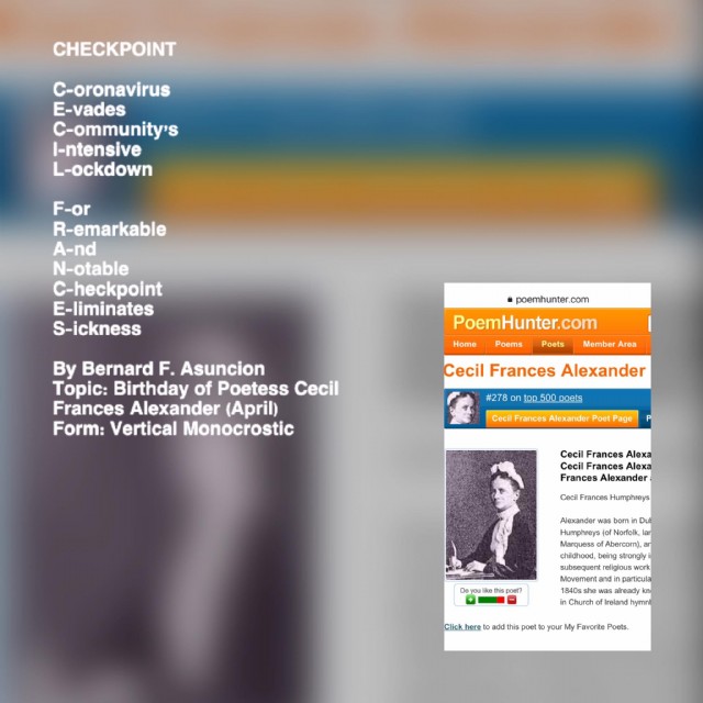 Topic: Birthday of Poetess Cecil Frances Alexander (April)