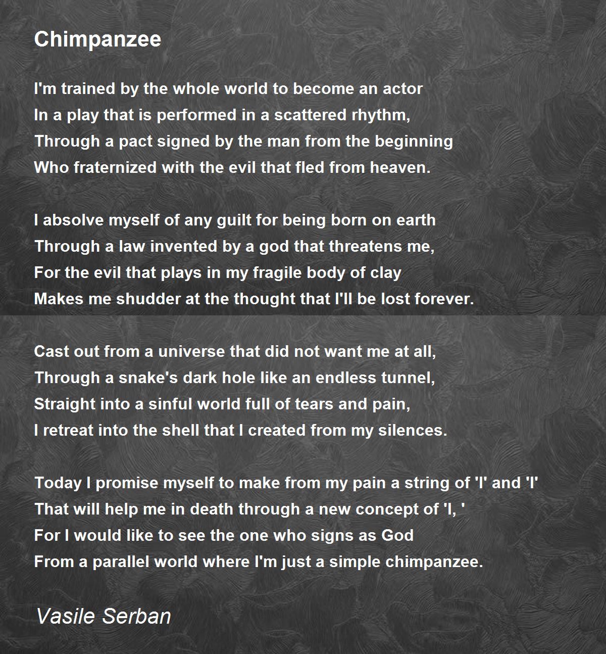 From a parallel world where I'm just a simple chimpanzee.