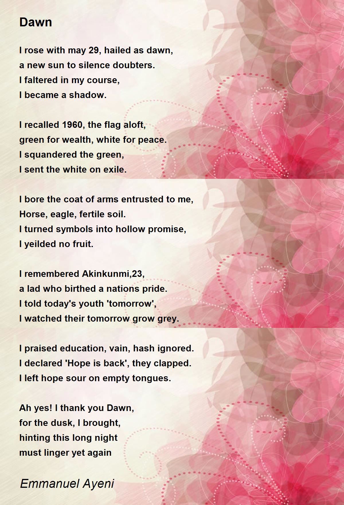 I rose with may 29, hailed as dawn,