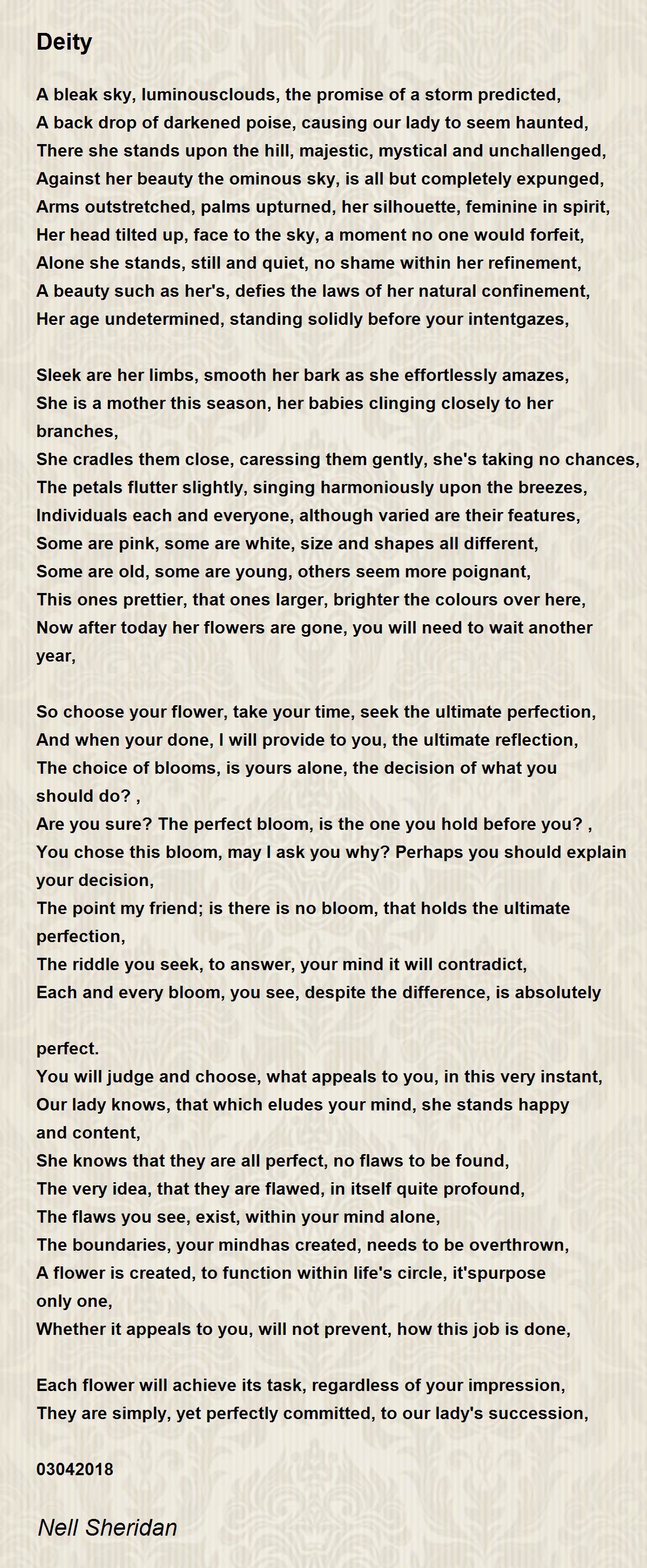 Our lady knows, that which eludes your mind, she stands happy and content,