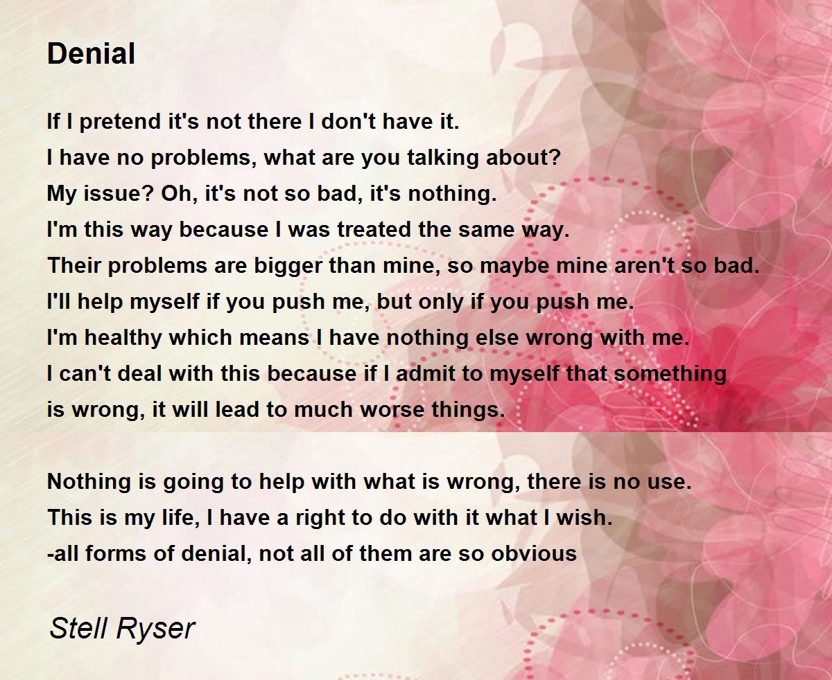I can't deal with this because if I admit to myself that something is wrong, it will lead to much worse things.