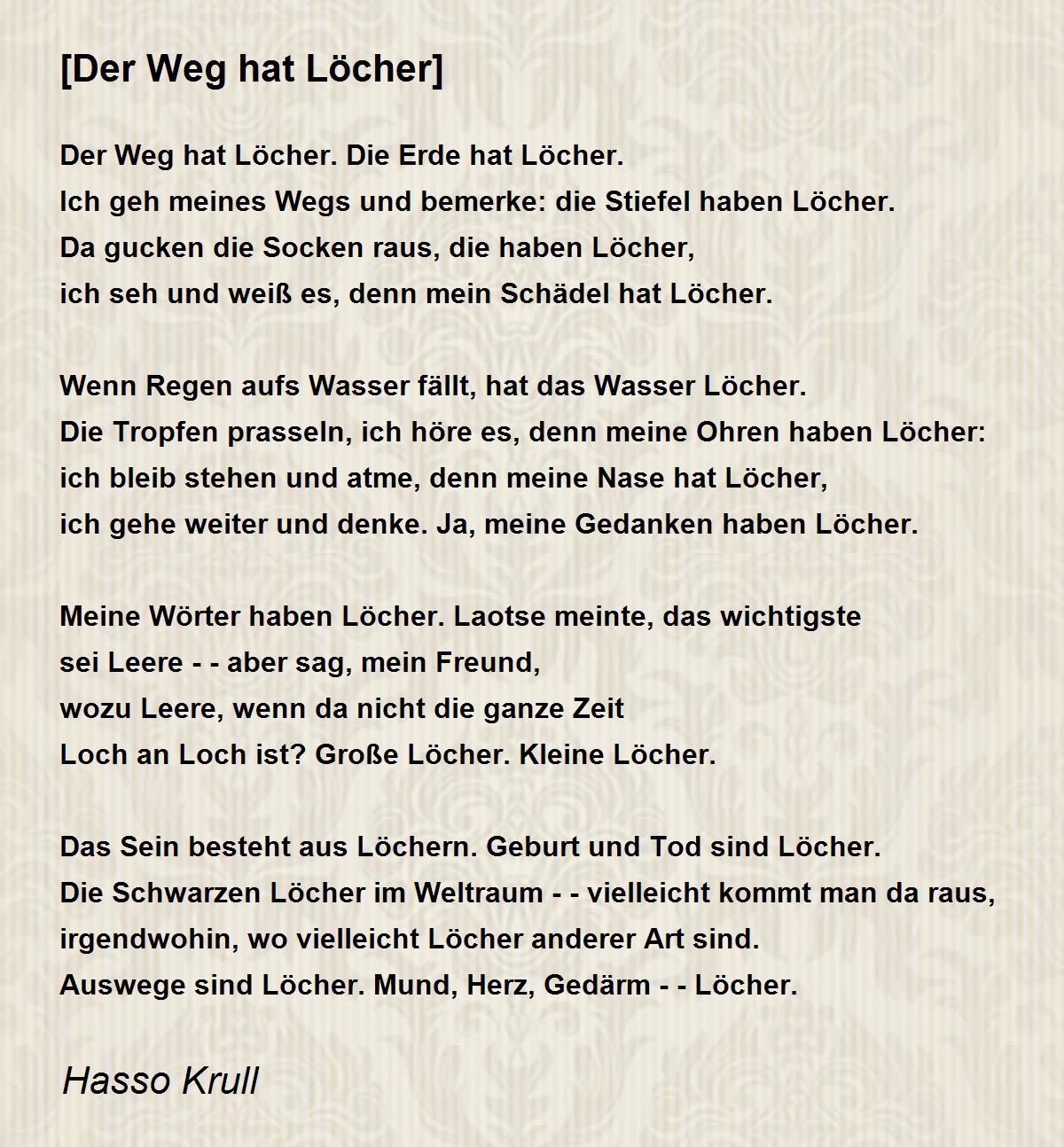 ich gehe weiter und denke. Ja, meine Gedanken haben Löcher.