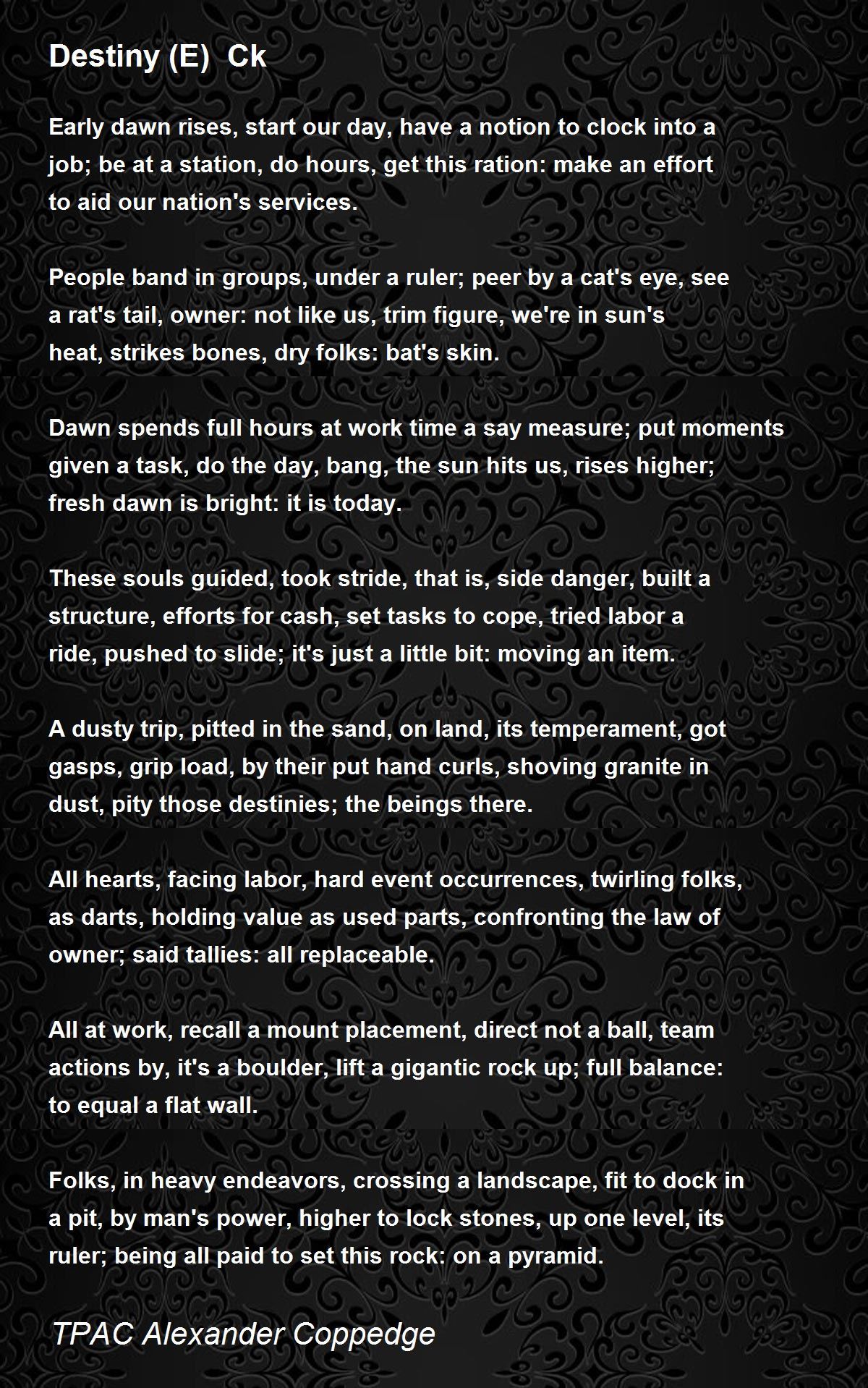 Destiny (E) Ck Poem by (TPAC) Alexander Coppedge