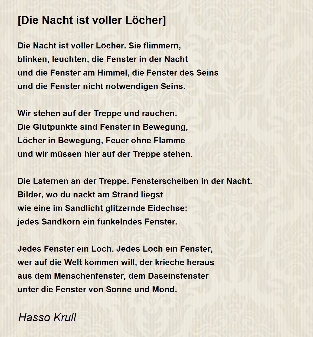 Die Nacht ist voller Löcher. Sie flimmern,