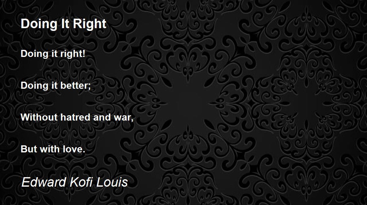Doing it right! Doing it better; Without hatred and war, But with love.