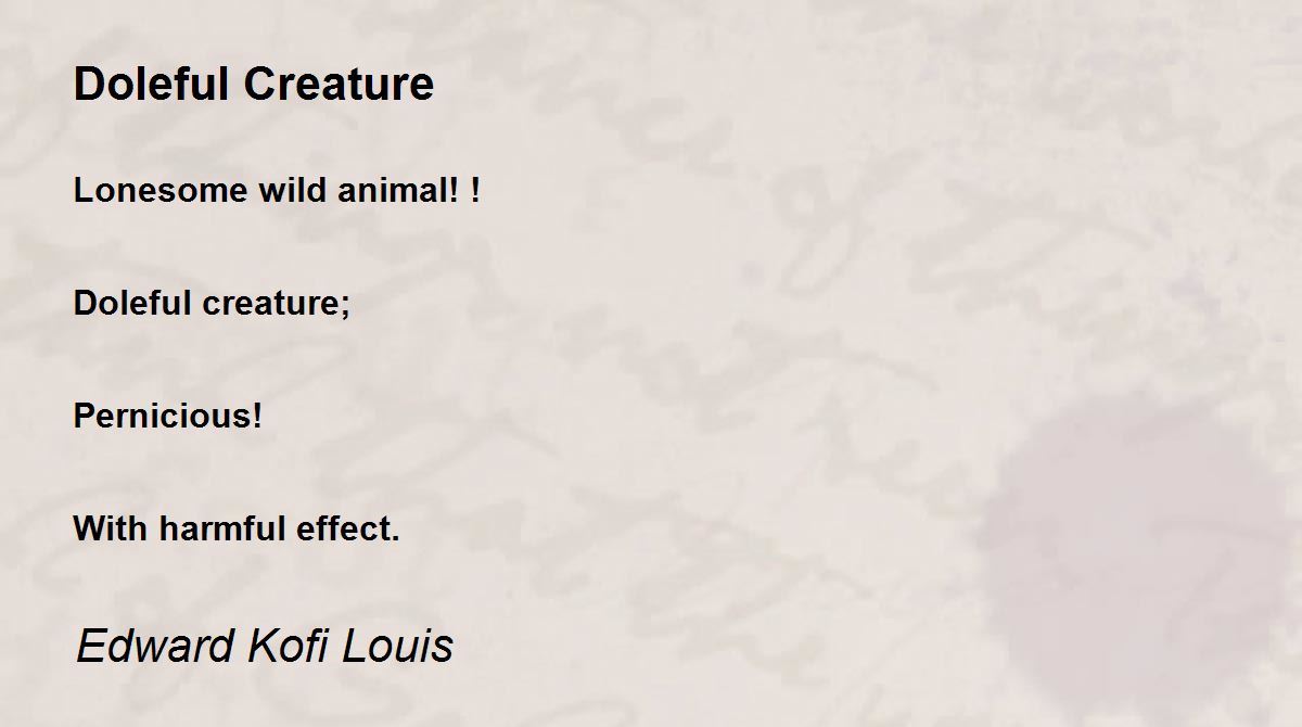 Lonesome wild animal! ! Doleful creature; Pernicious! With harmful effect.
